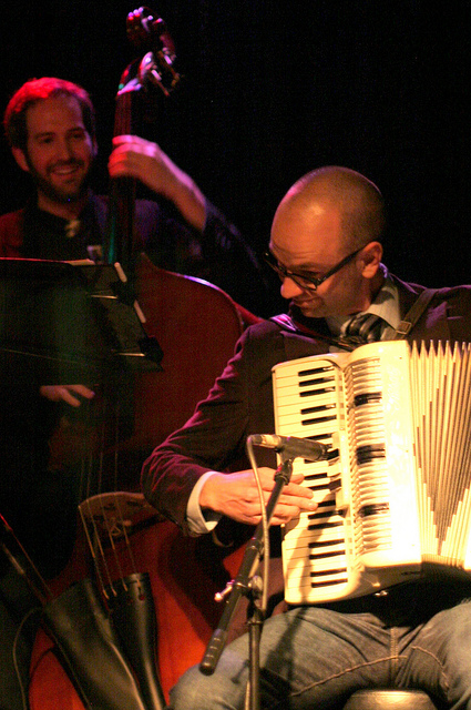 Riley Broach and John Peacock with The Viper & His Famous Orchestra, Kneel to Neil (Young) benefit for The Bridge School and WMSE, Linneman’s Riverwest Inn, Milwaukee, Wisconsin. Photograph by Sue Peacock.